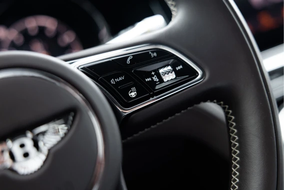 Het comfort wordt extra versterkt door de luxe Bentley stoelen. Deze volledig elektrisch verstelbare stoelen beschikken over massagefunctie, zijn verwarmd én geventileerd. Door de Mulliner Driving Specifcation zijn de stoelen uitgevoerd met diamond stitching wat tevens terug te vinden is in de deurpanelen. Ook het lederen 3-spaaks multifunctionele stuurwiel is verwarmd en voorzien van contrasterende stiksels. Om het de bestuurder zo makkelijk mogelijk te maken is de Bentley voorzien van Head-Up display, Night Vision, adaptieve cruise control, top view camera systeem, etc. Met het unieke rotating display kan de bestuurder kiezen voor een groot modern middenscherm of voor een fraai paneel met drie klokjes.