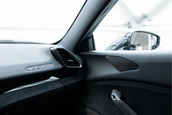 De donkerkleurige lichtmetalen velgen maken het geheel tot een duister en stoer voorkomen. Het zwart lederen interieur is afgestikt met een witzilver contraststiksel. Zo vinden we dit terug op het dashboard, deurpanelen, stuurwiel en middenconsole. Daarnaast is de auto voorzien van een Carbon Fiber Driverzone met LED stuurwiel.
